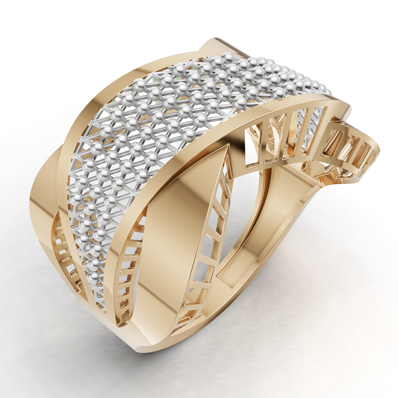 در تولید انگشتر بای پس031 عواملی مانند تعادل وزنی مدل، تناسب حجمها، یکنواختی پترن، تنوع بالا در کالکشن و کیفیت نهایی پرداخت و پولیش (مراحل ساخت طلا و جواهر) نقش تعیینکنندهای در موفقیت فروش دارند. ganjehgallery.com
