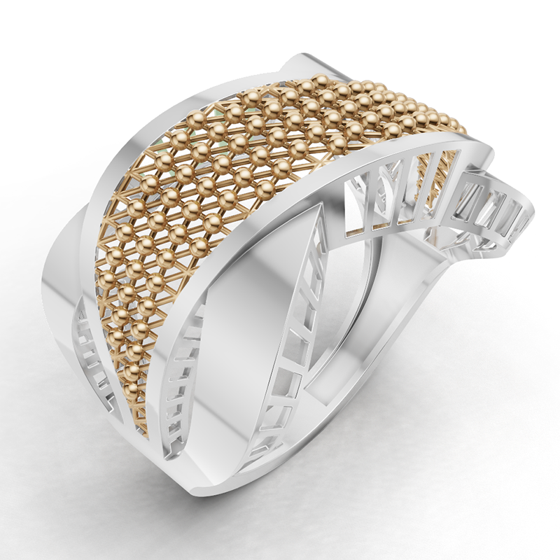 این نوع نگاه در طراحی طلا و جواهرات به طراحان کمک میکند فرم نهایی حالتی پویا، زنده و غیرایستا داشته باشد، فرمی که در نگاه اول حس حرکت و تداخل مسیرها را منتقل میکند. eligoldgallery.com